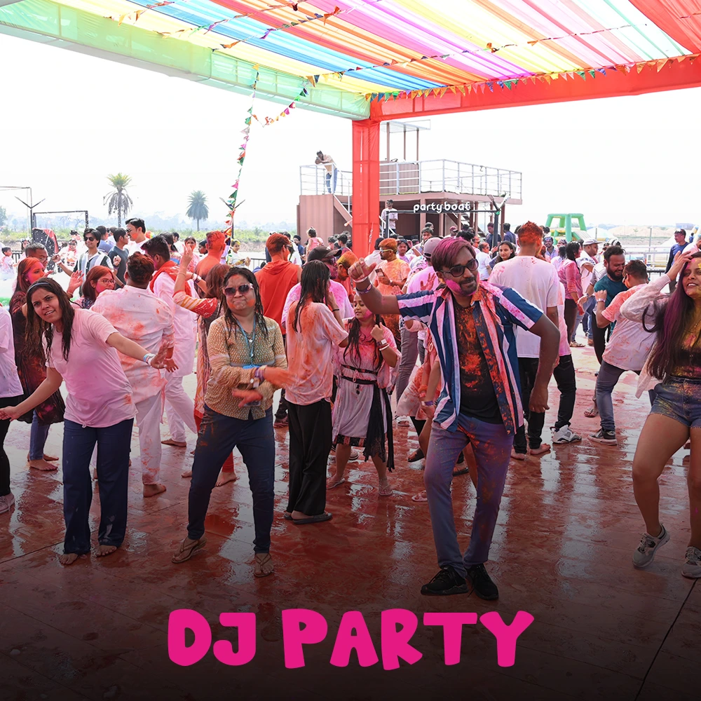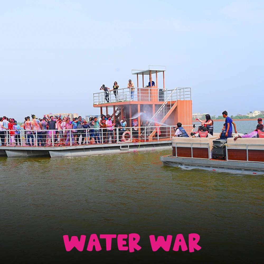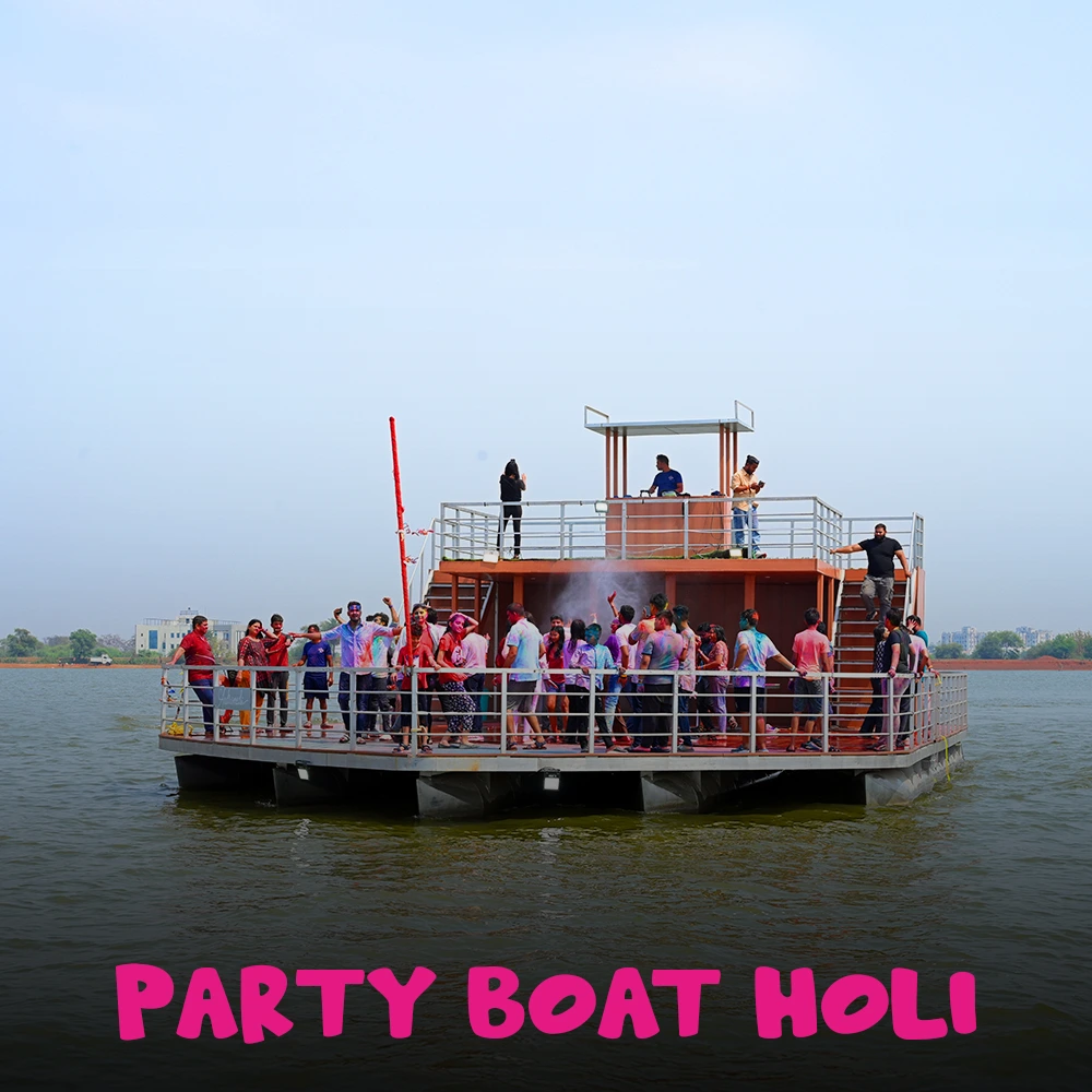 Floating Holi Carnival Experience – a high-energy celebration on water with music, colors, adventure, food & premium comfort zones.