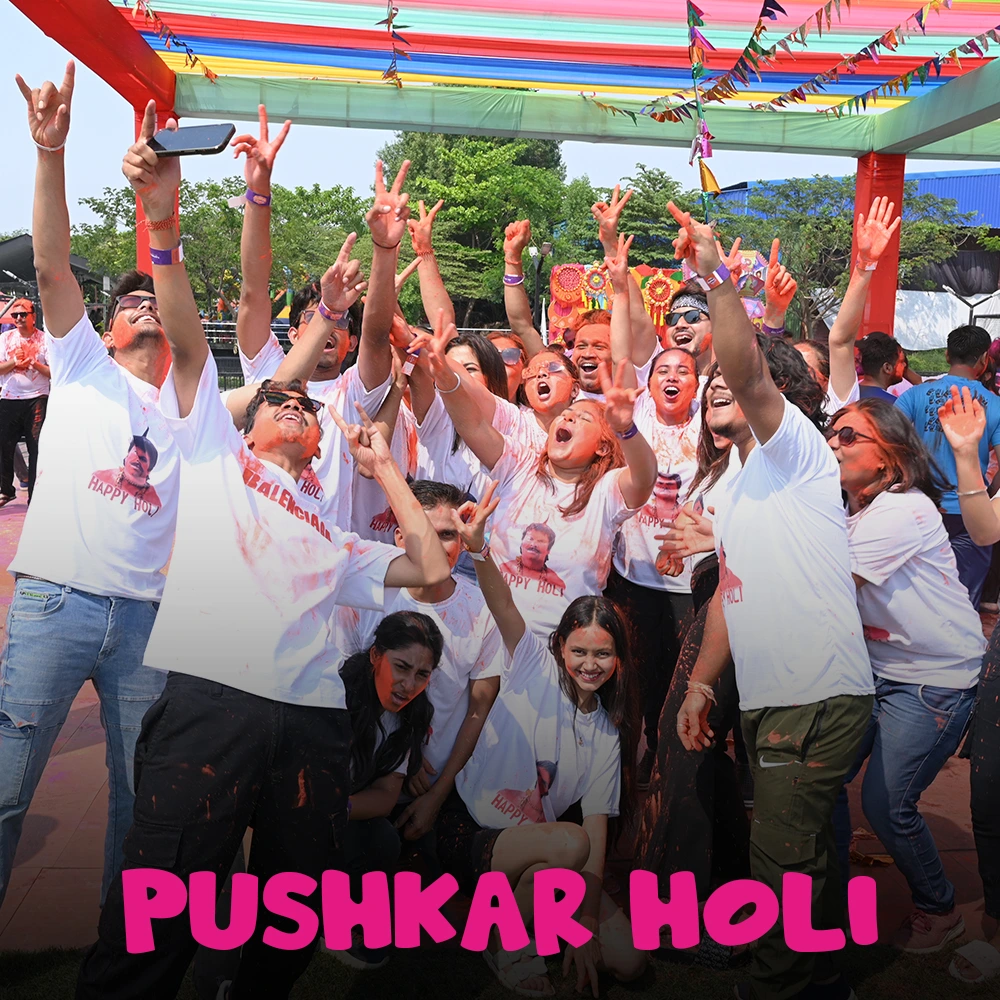 Floating DJ Rain Dance, Foam Party, Pushkar Floating Holi, Complimentary Gulal, Holi Props, Selfie Booth, and General Access Zones.
